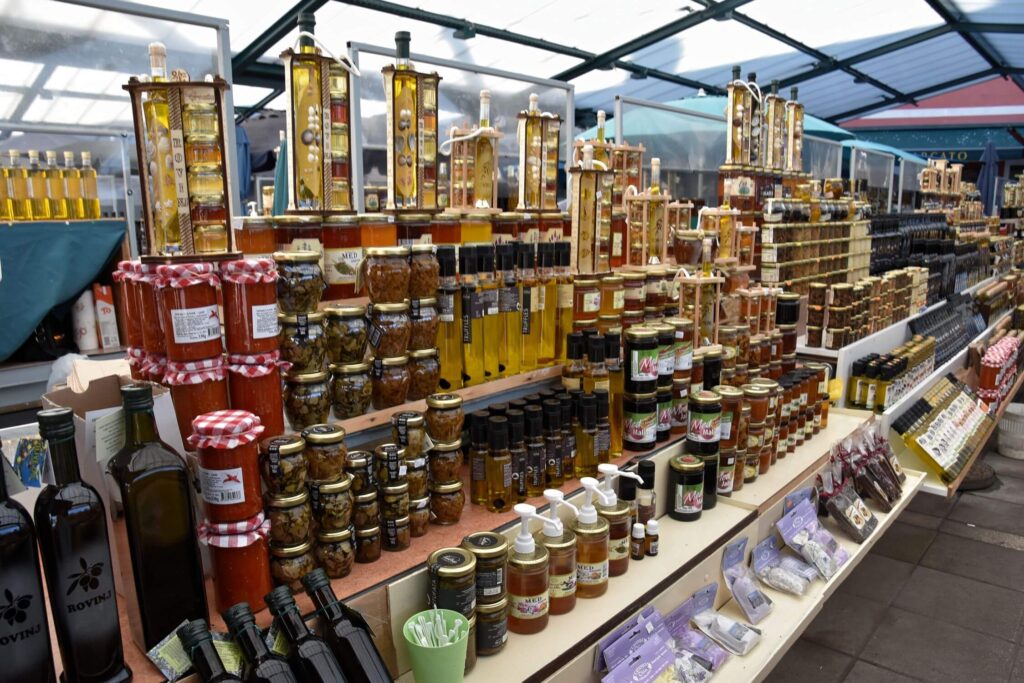 Z tej właśnie strony znajduje się targ z różnymi pamiątkami, a co najważniejsze targ z owocami, oliwą z oliwek i różnymi chorwackimi wyrobami. Warto wiedzieć, że targ jest czynny od 7.00 do 21.00, a poza sezonem od 7.00 do 17.00.
